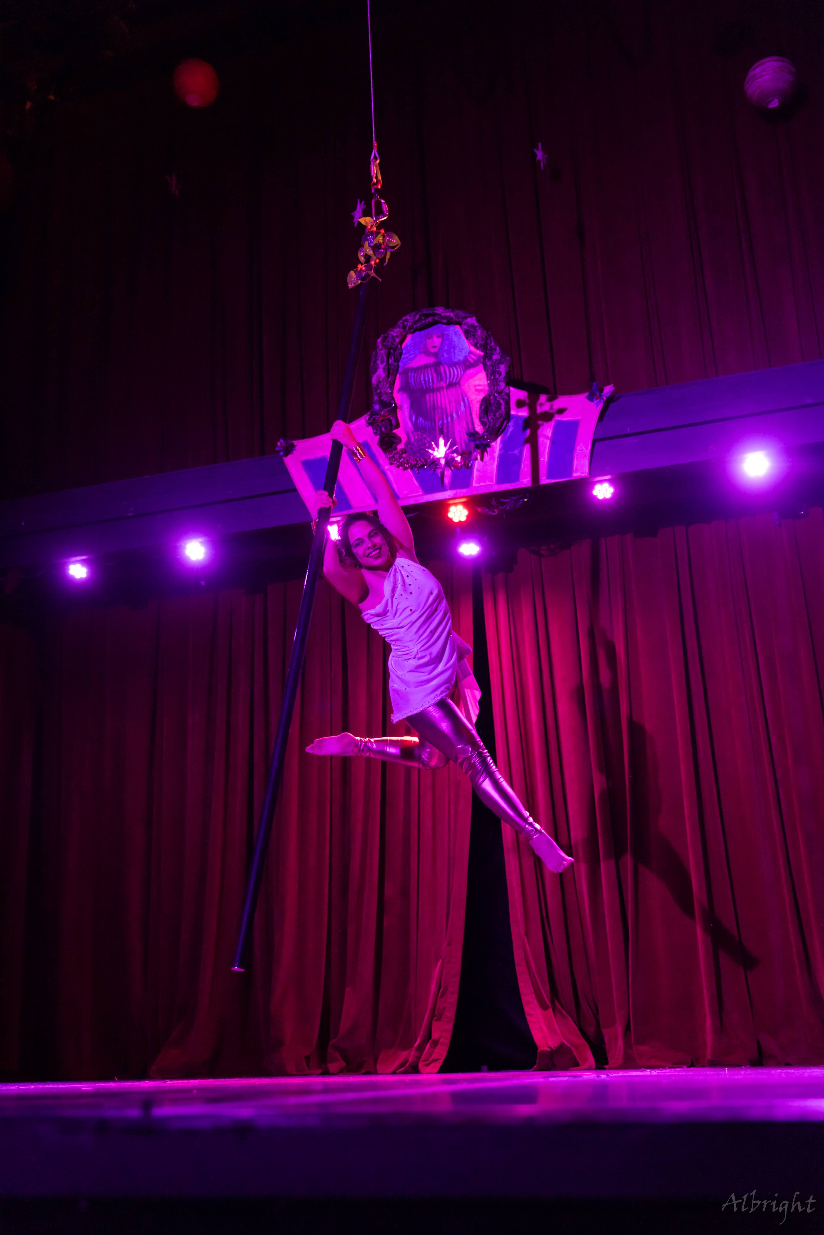 Though she be but little, she is fierce—Traviesa is a performing circus artist, coach, LMT-in-training, costume designer, published poet and yet still a dancer at heart. Studying movement arts since 2016 and performing circus arts since 2021, her repertoire includes spotlight solos, ambient crowdwork, and ensemble cast performances. With a background in dancing and theater, she blends her love of emotional storytelling with circus arts.