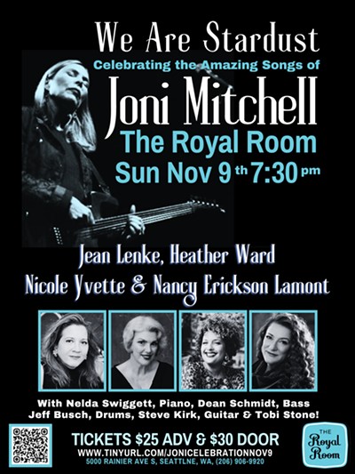 On Sunday, November 9th at 7 pm, The Royal Room in Seattle lights up with “We Are Stardust” — a joyful tribute to the music of Joni Mitchell.