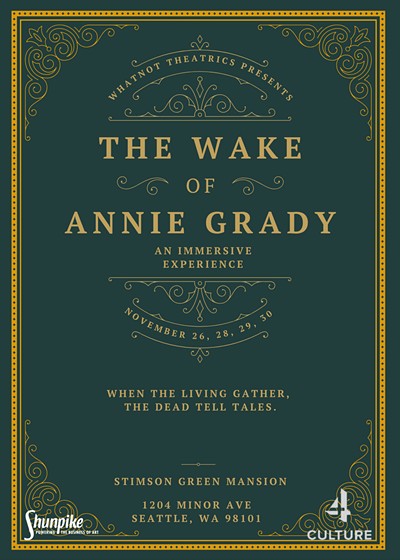 Whatnot Theatrics is fiscally sponsored by Shunpike. Wake of Annie Grady is made possible with support from 4Culture