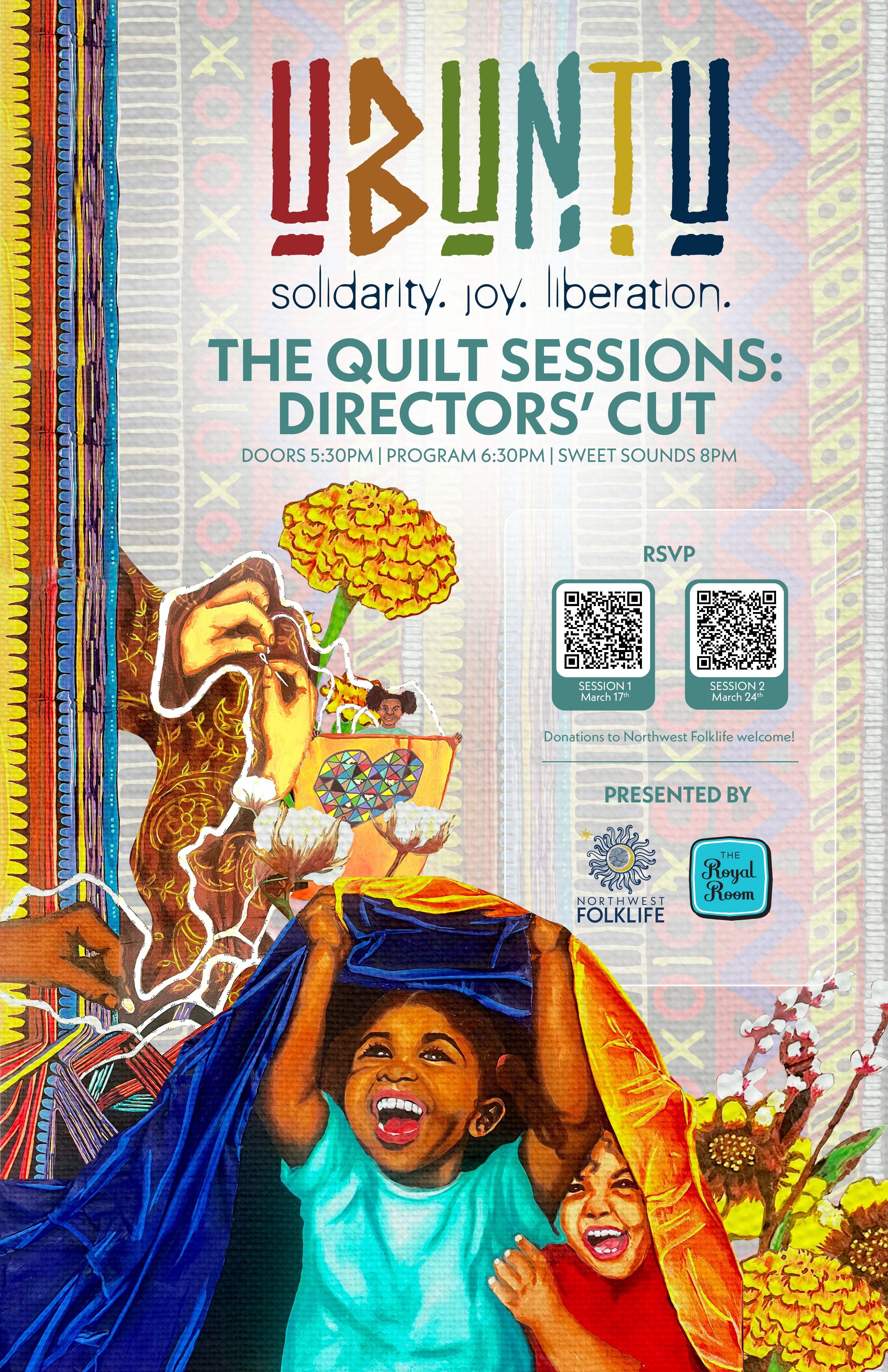 The Quilt Sessions are a dynamic collection of artistry, knowledge sharing and cultural preservation that are accessible to community through streaming events and hosted on Northwest Folklife's Archive. In a two part series, March 17th and 24th, the co-directors of the organization, Ben Hunter and Reese Tanimura, will converse with local cultural luminaries about the power and transformative opportunities of a robust, thriving creative ecosystem. Each Directors' Cut session will be followed by a musical "sweet treat" performance.