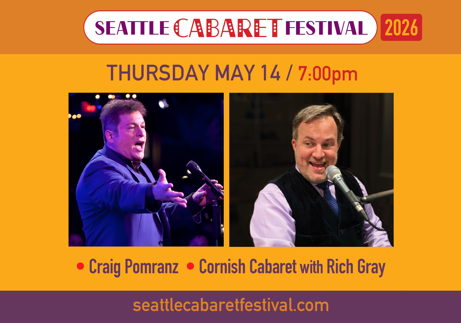 Seattle Cabaret Festival 2026 Presents: CRAIG POMRANZ and CORNISH CABARET WITH RICH GRAY - Thurs May 14 at 7 PM