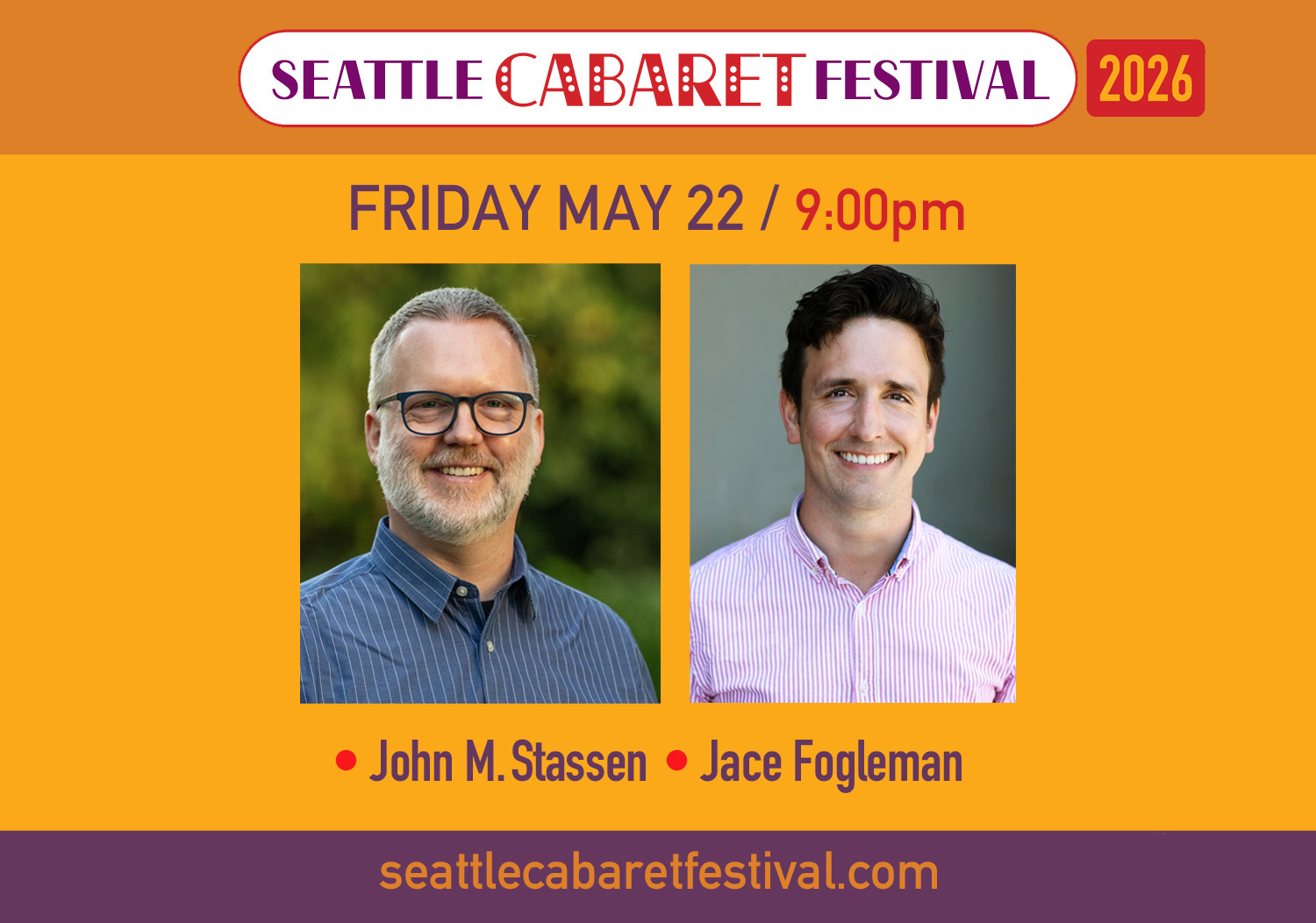 Seattle Cabaret Festival 2026 Presents: JOHN M. STASSEN and JACE FOGLEMAN - Fri May 22 at 9 PM