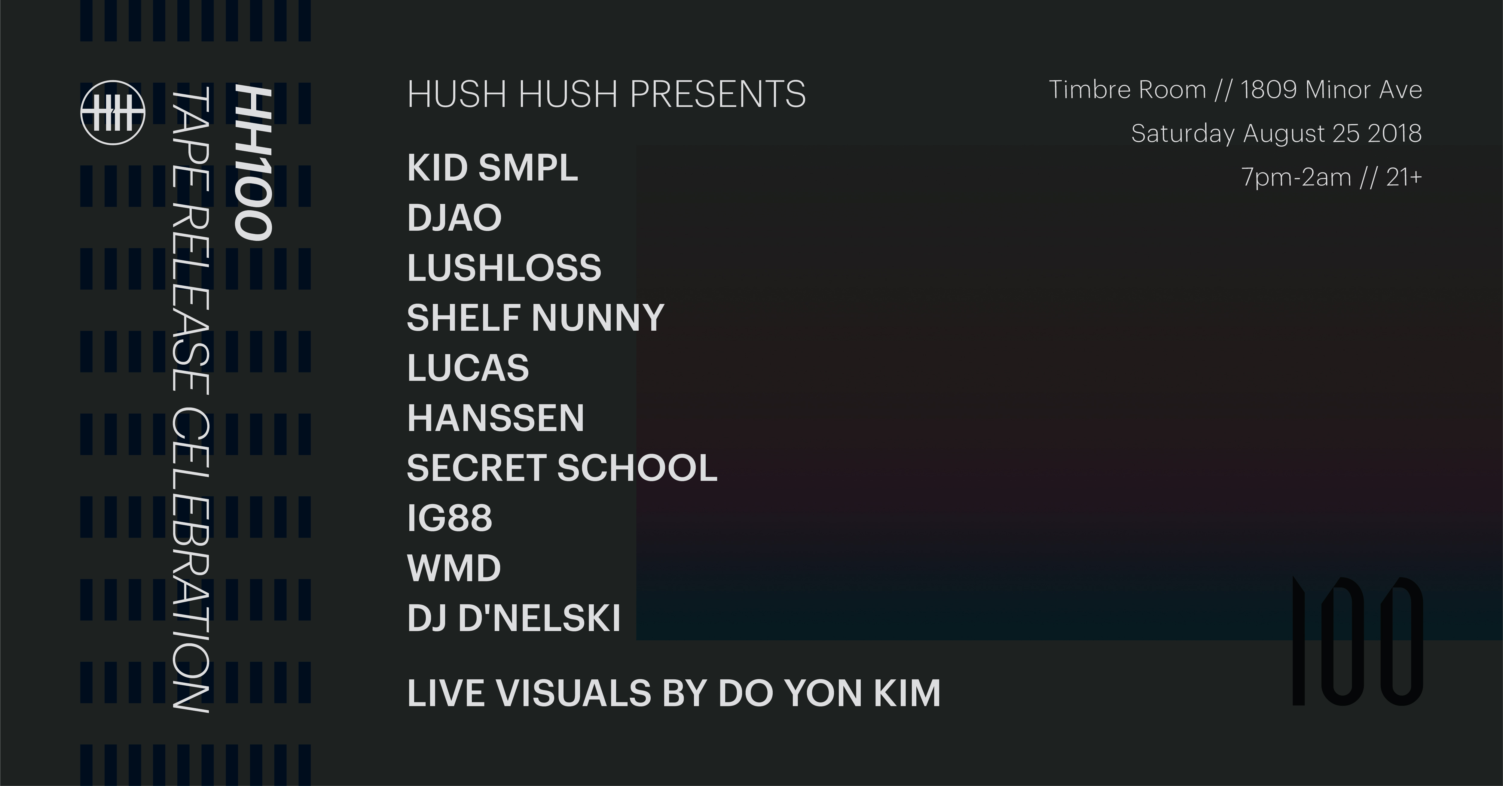 Founded by KEXP DJ Alex Ruder in 2012, Seattle-based DIY label Hush Hush Records celebrates the cassette tape release of its 100th release — the new label compilation HH100 — with an extended party featuring music from local artists that have graced (or will be gracing) the label's prolific roster.